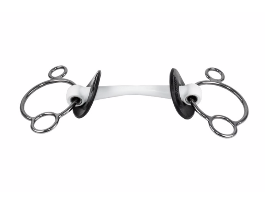 The Inno Sense Mullen is a straight bar that slightly bends forward. This mouthpiece is fabricated of elastic synthetic material. The bit has a rigid core that makes the mullen bar not flexible but the material around it gives the bit a soft touch.