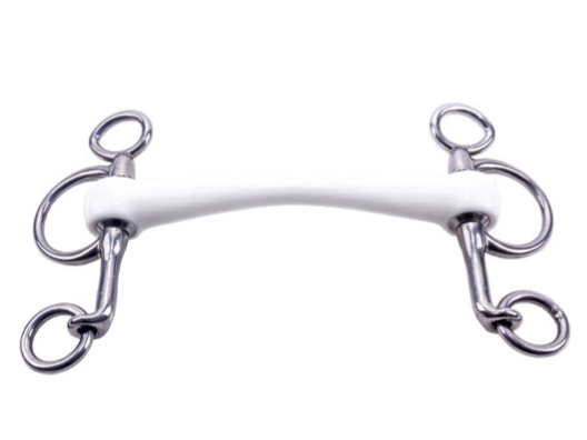 The Inno Sense Mullen is a straight bar that slightly bends forward. This mouthpiece is fabricated of elastic synthetic material. The bit has a rigid core that makes the mullen bar not flexible but the material around it gives the bit a soft touch.