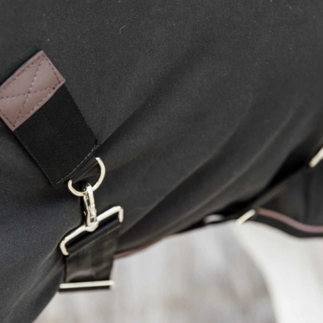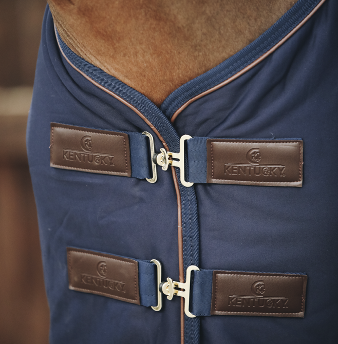 The Kentucky Horsewear Cooler Fleece Rug is the ideal rug to use after training or bathing your horse. This rug absorbs the sweat or water and makes sure that your horse doesn’t get cold in the process. It features two surcingles on the inside of the rug which are detachable so the rug can also be used as a show rug. The fancy leather piping, the artificial sheepskin on the withers and the elegant front closures offer a luxurious look to this Cooler Fleece Rug. It features two D-rings and a nylon strap to go under the tail to keep it in place. The rug sustains the washing machine at 30°, no dryer.