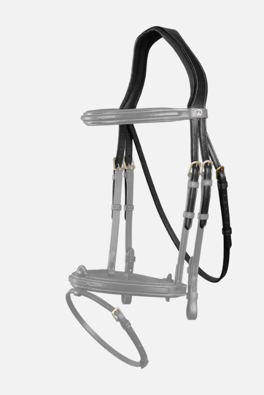 Supple S-shaped headpiece – the latest Dy’on innovation for the US Collection bridles. This S-shaped headpiece is an improvement on the model that you used to know. The difference? The S shape has been accentuated and the browband sits lower down on the headpiece so as not to hug the base of the ear – one of the sensitive spots on your horse’s head.Accentuating the S shape also makes it possible to espouse the contour of the base of the ear without exerting pressure on it.