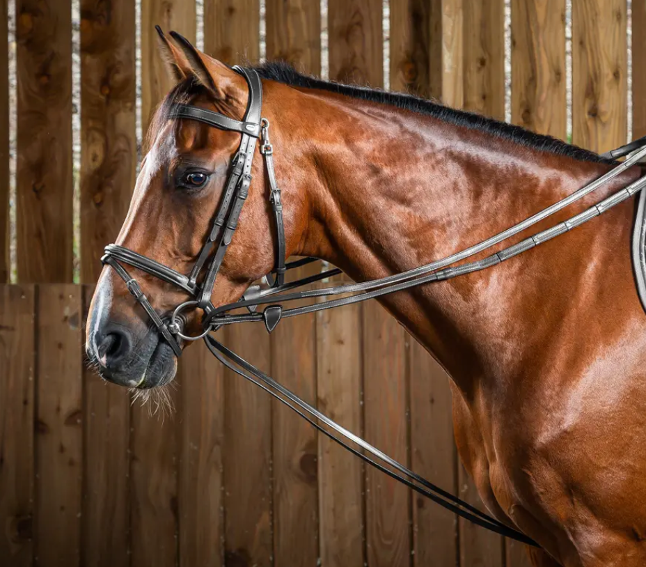 Hunter Draw Reins 1/2 Supple leather grip lined with a rubber half-grip Two snap hooks Draw rein attachment