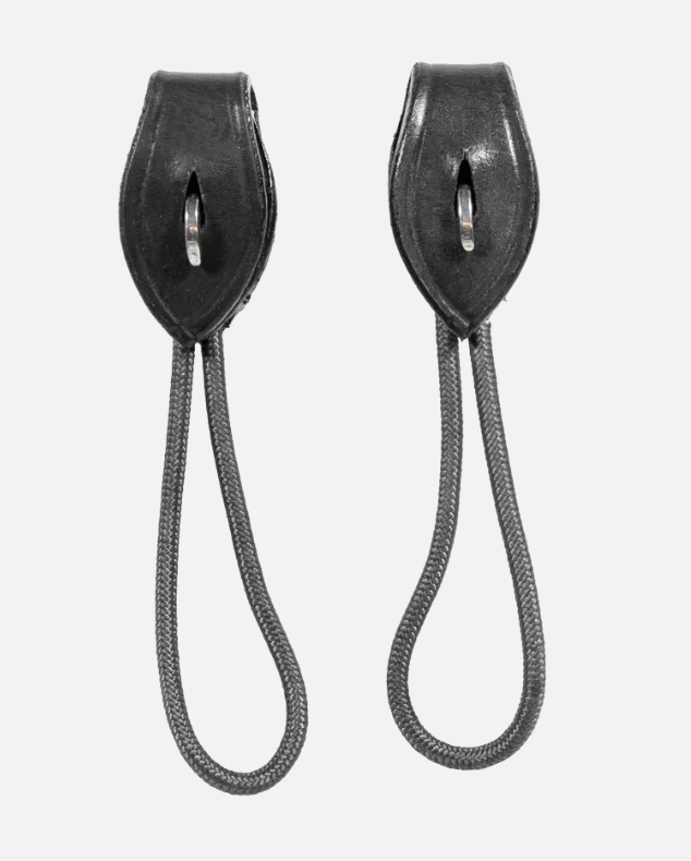 The Long Pelham Strap has thin rope to fit with a lot of different pelham sizes. The strap has a leather hook attachment.
