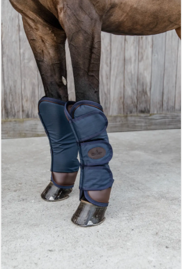 The boots come in a set of 4. 2 front boots protect from the heel up to the knee. The 2 hind boots protect from the heel up to the hock. Thanks to the 3 strong hook and loop closures, you don’t have to worry about losing the boots during transport.