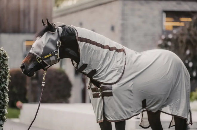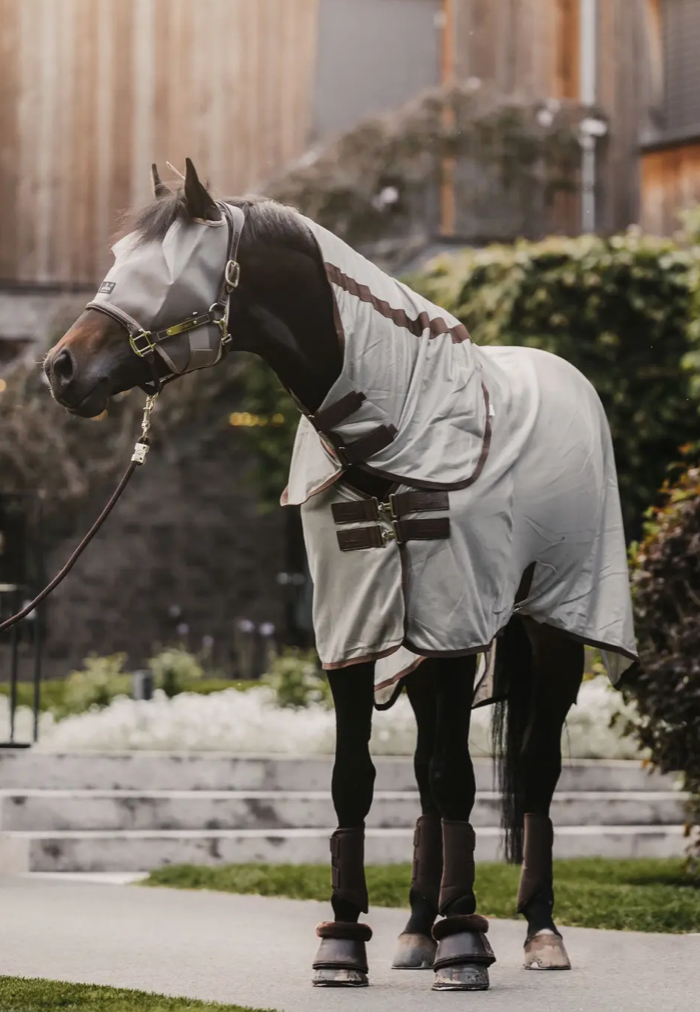 The Mesh Fly rug Classic is a must-have for the summer with an excellent price-performance ratio. The mesh used for this classic version is very lightweight and allows the horse to be protected from flies without adding unnecessary warmth on warmer days. The light color reflects the sun and keeps your horse cool. Your horse is fully protected on the body, the beginning of the tail and on the neck thanks to the included neck piece.