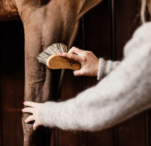 This varnished brush is filled with grey Tampico, a vegetable fiber that is generally used to make ropes. This makes it a very hard brush, ideal in extreme weather conditions when the horses’ coat is so muddy. You can also use it on the hoofs. The brush has a banana form, for a better grip. Clean your brush by damping it into soapy warm water and make sur it lasts for a long time. Your horse will become the star of the stables thanks to this brush!