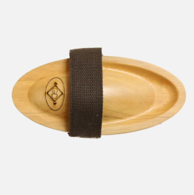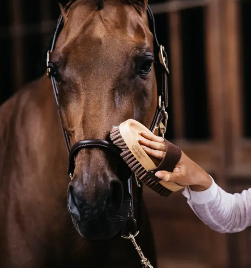 This varnished oval brush is filled with short nylon bristles to help distribute the oil of the coat and produce a shiny, glowing coat. It is ideal to use on clipped horses, horses with a thinner coat or sensitive horses. This brush has a cotton strap to hold your hand and help a better action. Clean your brush by damping it into soapy warm water and make sure it lasts for a long time. Your horse will become the star of the stables thanks to this brush!