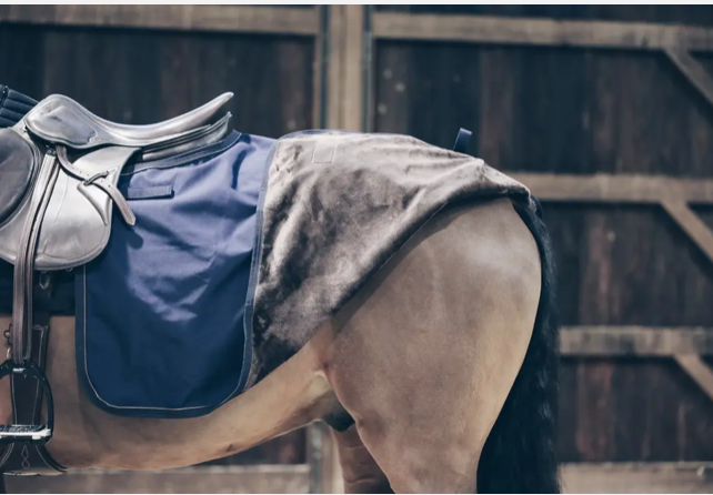 The Quarter Rug All Weather is a high-performance rug made out of a three-layer fabric. The 600D high tenacity polyester outer fabric is laminated with a waterproof breathable membrane and on the inside with our artificial rabbit skin. It’s the ideal rug for riding or warming up and cooling down, especially when it’s raining to keep your horse dry. The artificial rabbit skin lining offers extra warmth because it creates tiny air pockets that retain the body heat. The lining feels very soft against the skin and polishes the horse’s coat as well as preventing rubs. The Quarter Rug All Weather features two Velcro fastenings to attach to the saddle, as well as a tail cord. The brown artificial leather piping and Kentucky logo give the rug a very fancy look. The rug is machine washable at 30°, no dryer.