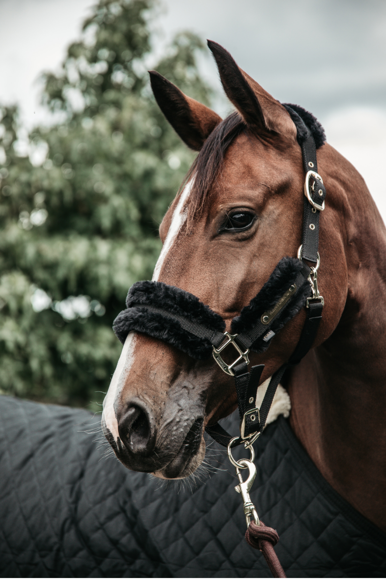 The Nylon Sheepskin Halter Soft is even more stylish and provides even more comfort for the horse. The extra wide pieces of artificial sheepskin on the nose, behind the ears and on the cheeks make this halter perfect for sensitive horses or during transport.
