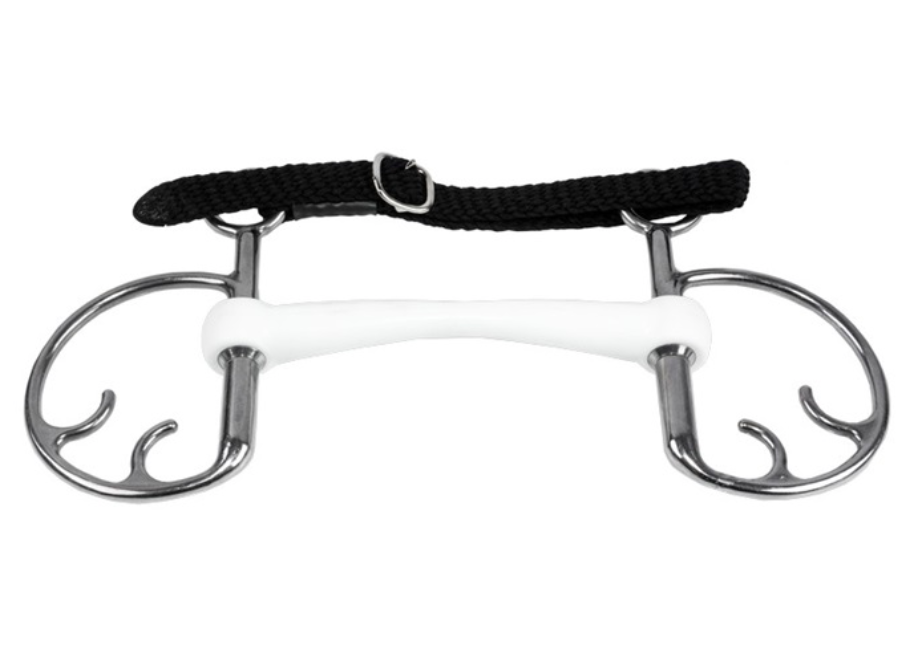 The Inno Sense Mullen is a straight bar that slightly bends forward. This mouthpiece is fabricated of elastic synthetic material. The bit has a rigid core that makes the mullen bar not flexible but the material around it gives the bit a soft touch.