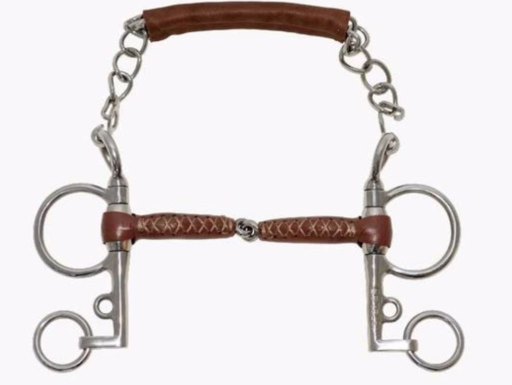 The Metalab Evolution Leather Pelham Bit has a unique design sure to be appreciated by your horse! Featuring standard metal construction with leather covering over the mouthpiece, this bit easily warms up and softly conforms to your horse's mouth. It also has a pinchless design, with the center of the joint rotating 360-degrees to avoid pinching the tongue when the reins are engaged. This also allows each side of the bit to move independently for clearer communication.