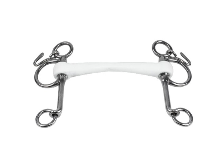 The Inno Sense Mullen is a straight bar that slightly bends forward. This mouthpiece is fabricated of elastic synthetic material. The bit has a rigid core that makes the mullen bar not flexible but the material around it gives the bit a soft touch.