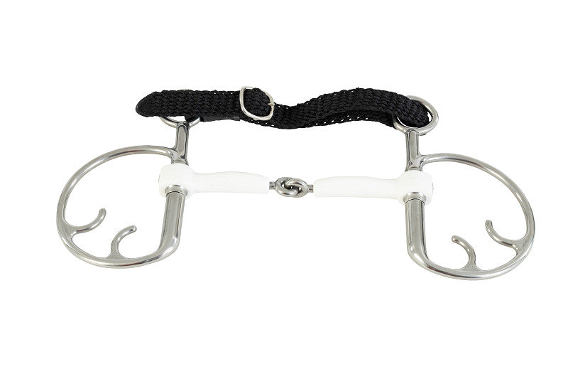 The Kimblehook cheekpiece is a type of pelham but has a milder effect and is ridden with one rein. The rider can determine the sharpness of the bit. The lower the rein is attached, the greater the leverage, the sharper the bit. This cheekpiece offers the rider more control over the horse than a standard cheekpiece. The Kimblehook is not suitable for the inexperienced rider.