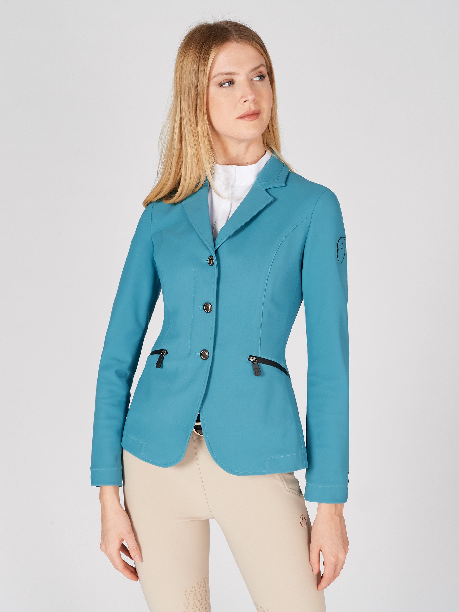 Unlined women’s competition jacket, Montevideo is our best seller show jacket with a perfect fitted fit for every body size. The knitted and very strong fabric makes it perfect for competitions. At the same time, it’s soft enough to guarantee freedom of movement for every body shape, including curvy ones. Double fastening on the front: hidden zip and three buttons with Vestrum logo to ensure the closure of the jacket. Laser logo on shoulder.